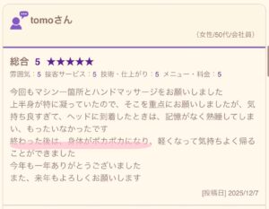 日中仕事が忙しくて時間のない方、妊婦さんからも遅い時間にメールでご予約いただくことも多くあります